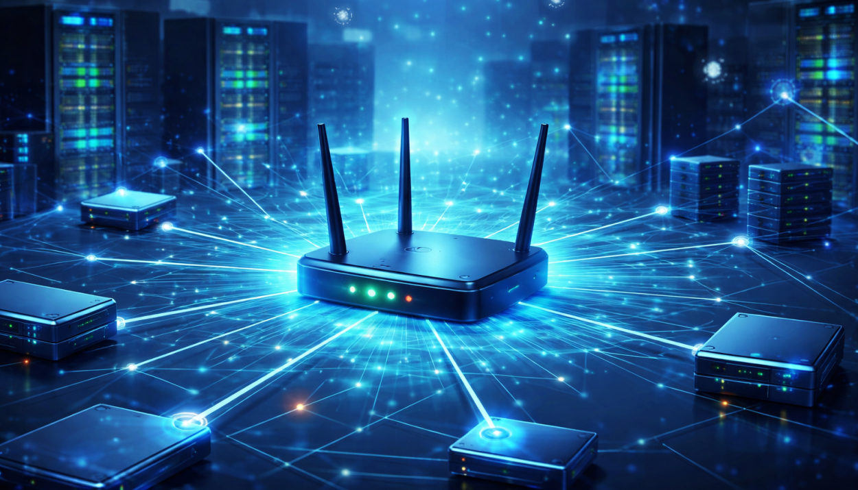 Router berfungsi mengatur lalu lintas data dan menentukan jalur terbaik agar data sampai ke tujuan. Perangkat ini juga berperan penting dalam keamanan jaringan melalui fitur firewall dan NAT.