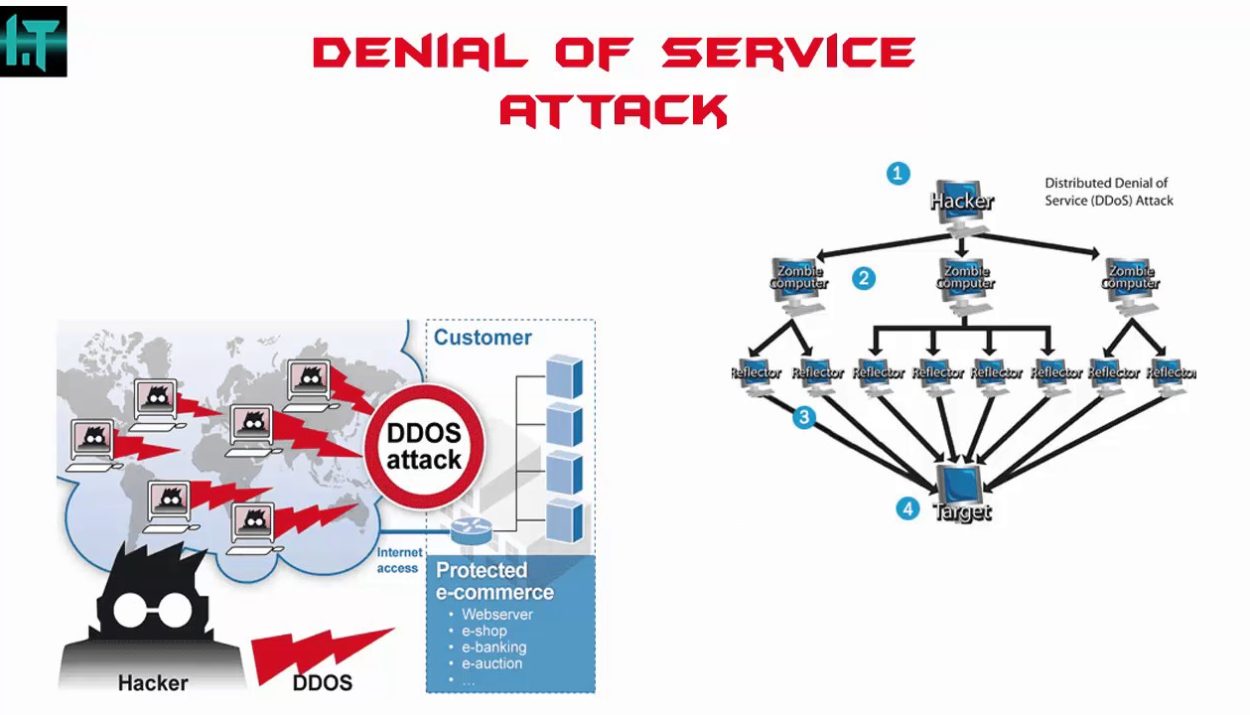Denial of Service (DoS) adalah serangan yang bertujuan membuat suatu layanan online menjadi tidak tersedia dengan membanjiri sistem dengan trafik atau permintaan secara berlebihan. Server yang diserang tidak mampu menangani beban, akhirnya hang, lambat, atau sepenuhnya mati.