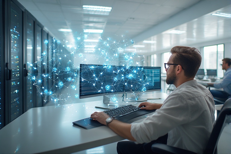 Telco menggunakan Virtualization untuk mengelola network function berbasis VM (NFV). Resource dialokasikan otomatis sesuai trafik, mengurangi 30–40% kebutuhan perangkat keras fisik.
